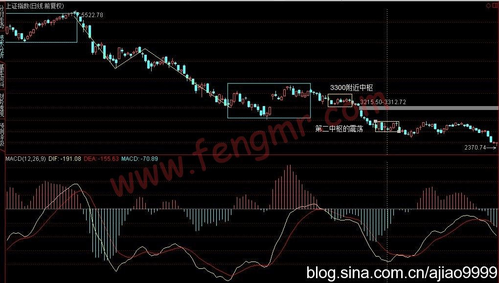 后面具体的走势,如果你真喜欢预测闹着玩,那也很容易,从3786点下来这最后一跌,显然要走出至少两个中枢,否则这还是前面中枢的震荡,这就还不是最后一跌了。那么。现在在3300点上有一个中枢了,因此,这一轮下跌要完成,最标准的走法,就是先反弹出第二个中枢,这个中枢的波动区间基本没可能回补缺口,然后再一次破位,形成真正的背驰。