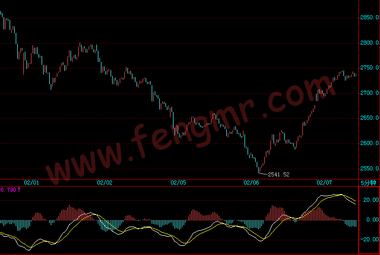 2007-02-06 15:12:35 今天的走势十分标准规范,只要对本ID的理论有一点了解的,都不难找到这个5分钟背驰的底部。目前的事情很简单了,5分钟背驰,一个大的阻力就是2720,这是上次的低点,如果能上去,那周线的第一段就不会演化成下跌的趋势,一个2720上下的周线中枢将逐步形成,否则,就有在下面形成下跌的第二个中枢的可能,这样走势压力就比较大了。但即使这样,只会导致30分钟或15分钟回抽后制造一个比这次5分钟更大级别的背驰,那次的回拉,级别就更大了。